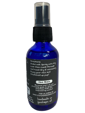 Directions: Shake well. Spray onto dry coat, then comb through, and towel dry if necessary. Enjoy your nice and freshened up pup!