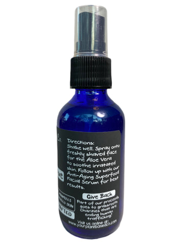 Directions: Shake well. Spray onto freshly shaved face to allow the Aloe Vera to soothe the irritated skin. Apply the Anti-Aging Facial Serum for your skin type for best results.